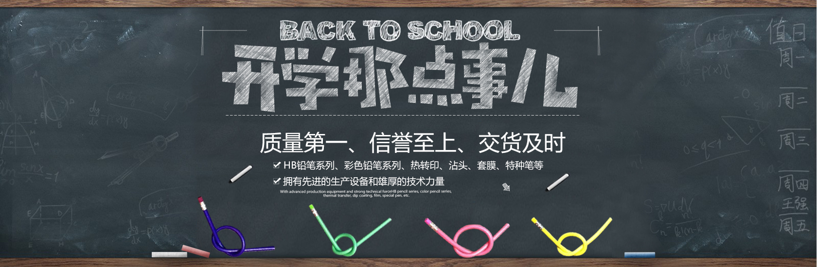 公司自成立后,現已發展為能生產如:HB鉛筆系列、彩色鉛筆系列、熱轉印、沾頭、套膜、特種筆等十多種鉛筆系列規格的產品,深受國內外客戶的認可。公司歡迎OEM。